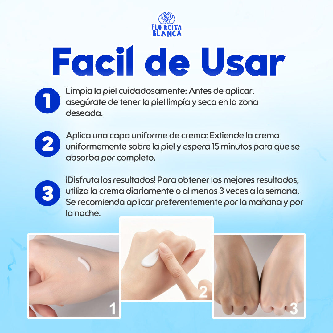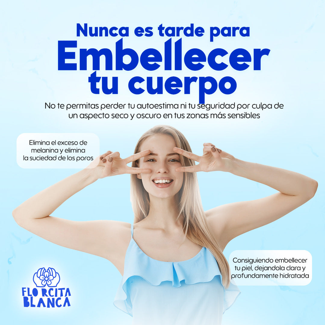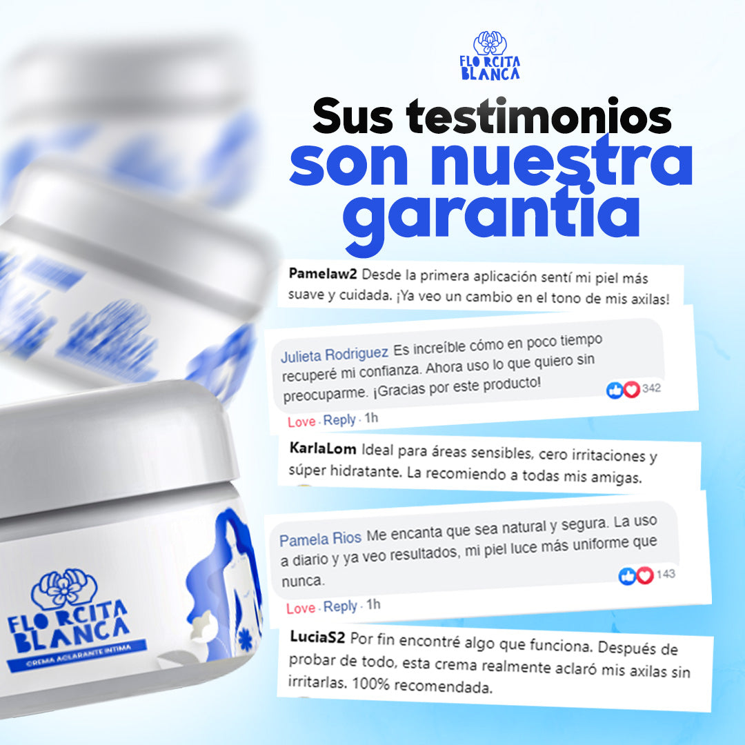 Florcita Blanca™ actúa desde la primera semana, aclarando progresivamente zonas sensibles con una fórmula suave, sin químicos agresivos, para que vuelvas a sentirte bien con tu piel.