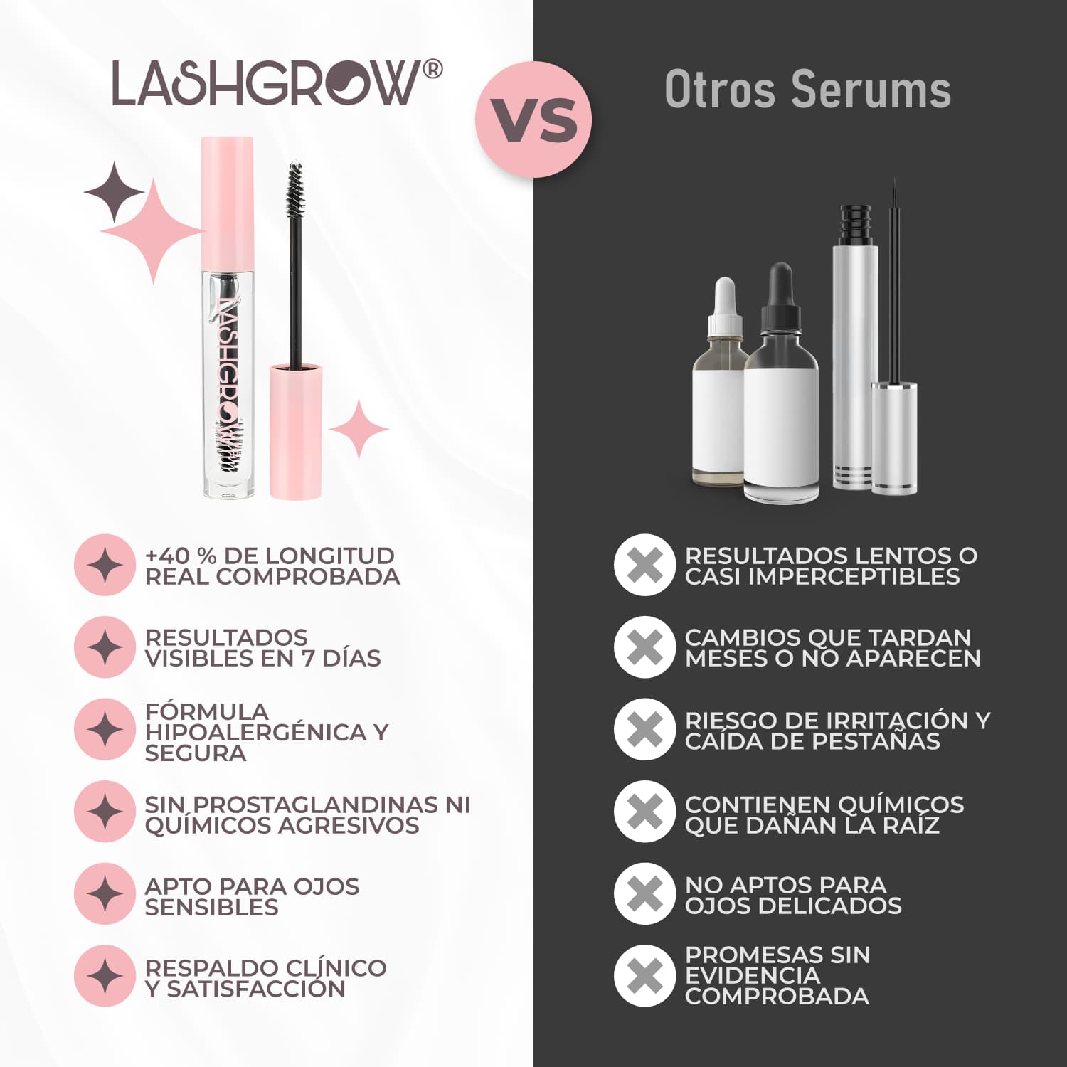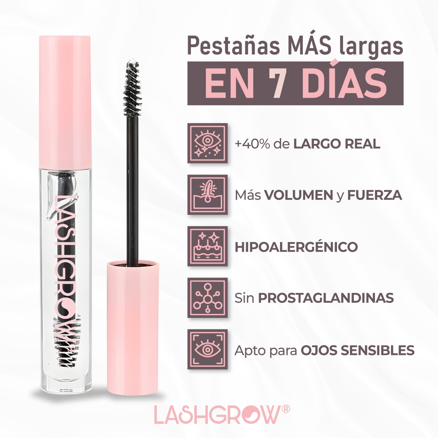 Sí. LashGlow® utiliza ingredientes naturales que estimulan el crecimiento y fortalecimiento de tus pestañas y cejas de manera progresiva.