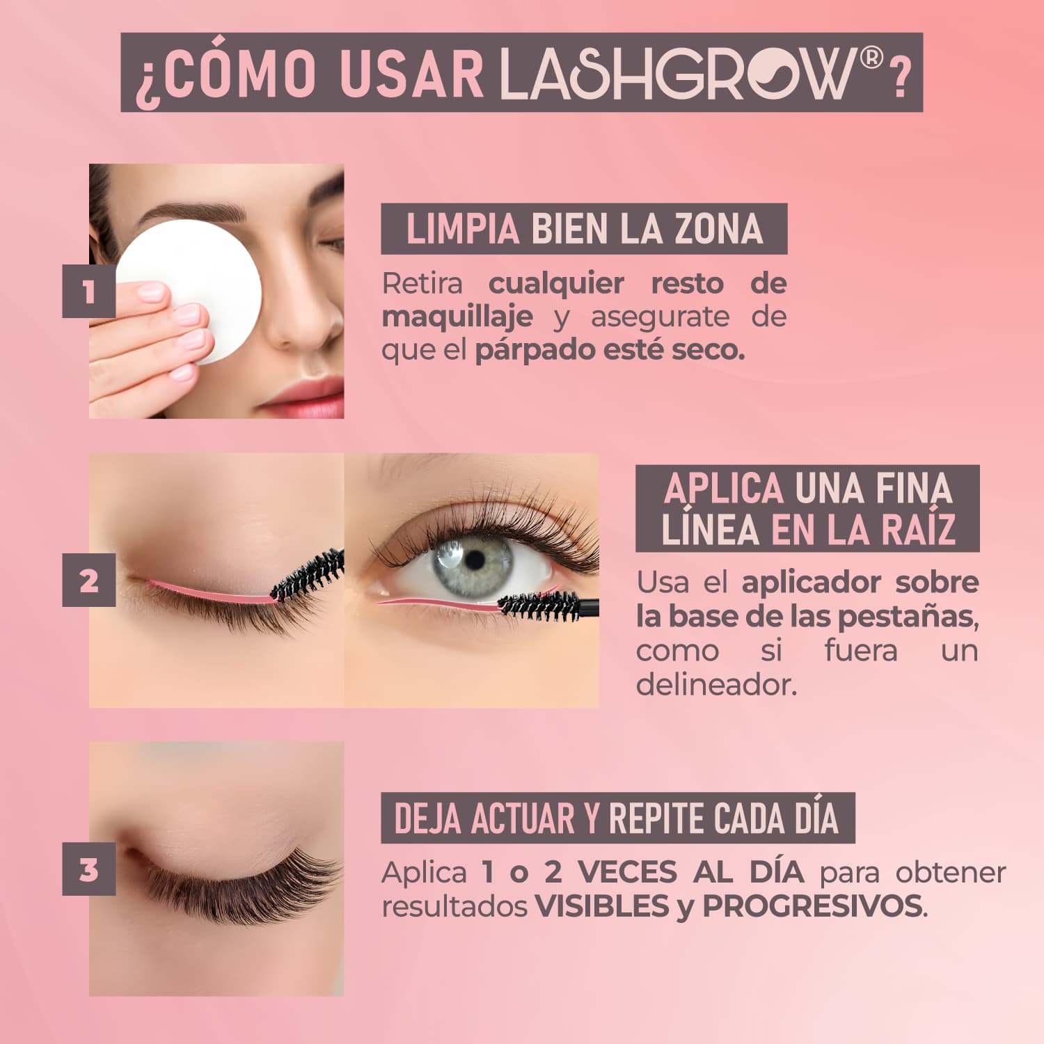 Pestañas más largas, voluminosas y fuertes. ¡Haz crecer tu mirada con LashGlow®!